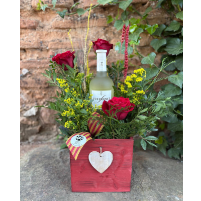 Rosal pitimini de Sant Jordi envuelto con papel de seda rojo y bolsa kraft, test de 13 cm de diámetro.