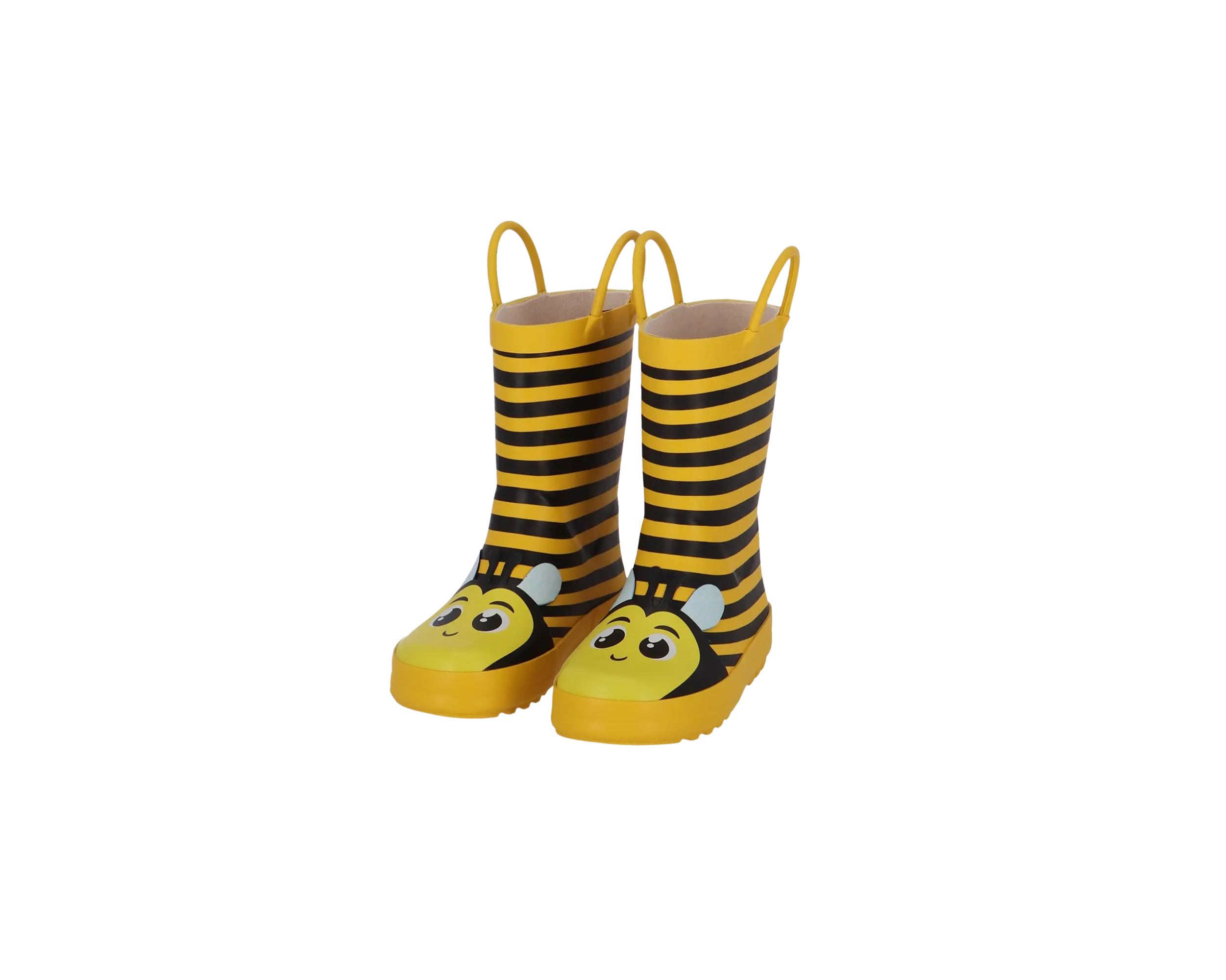 Botes infantils amb un divertit estampat d’abella. Les botes disposen de nanses per facilitar-ne l’estirament. Protegeixen els nens de la pluja i mantenen els peus secs, cosa que els permet seguir jugant a l’exterior fins i tot en temps humit.