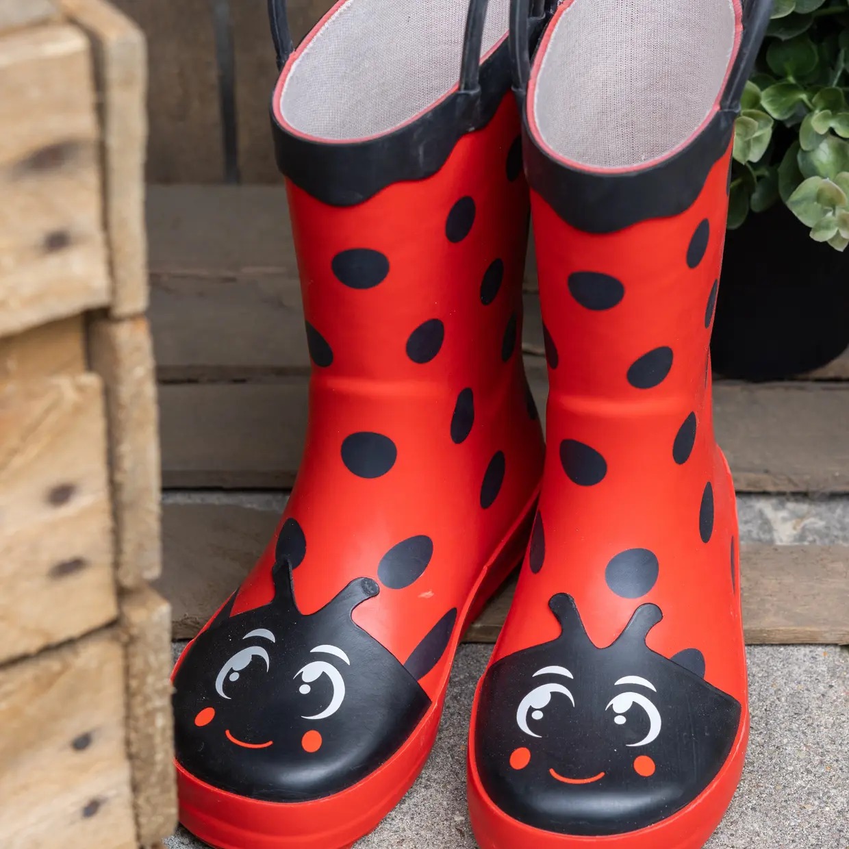 Botes infantils amb un divertit estampat de marieta. Les botes disposen de nanses per facilitar-ne l’estirament. Protegeixen els nens de la pluja i mantenen els peus secs, cosa que els permet seguir jugant a l’exterior fins i tot en temps humit.