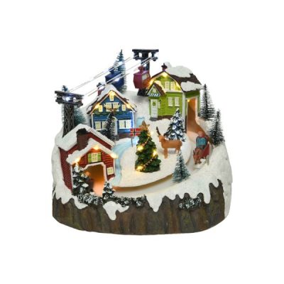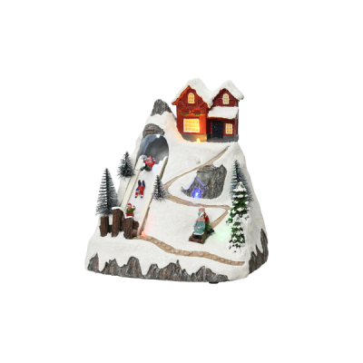 Escena de paisatge nevat on apareix el Pare Noel amb parapent en moviment i uns nens tirant-se per una baixada de neu. Funciona amb endoll (inclòs).