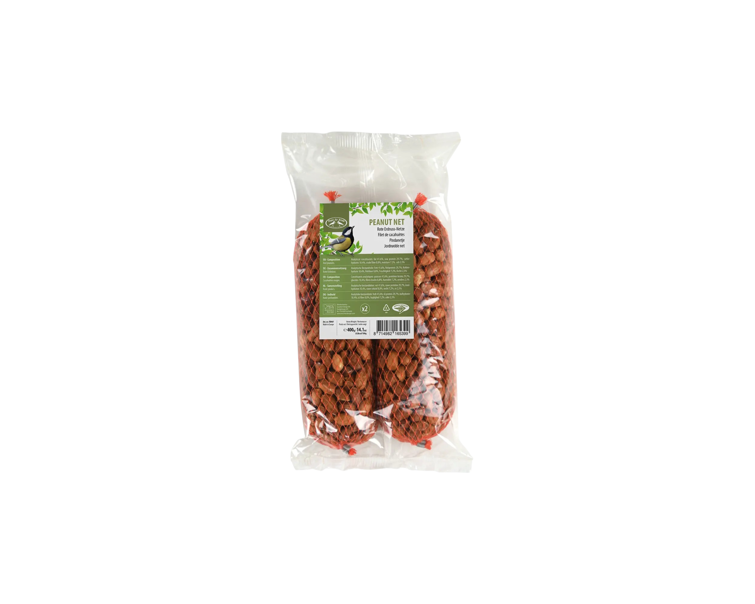 Atreu ocells salvatges al jardí amb aquest conjunt de dues xarxes de cacauet. 0,4 kg.